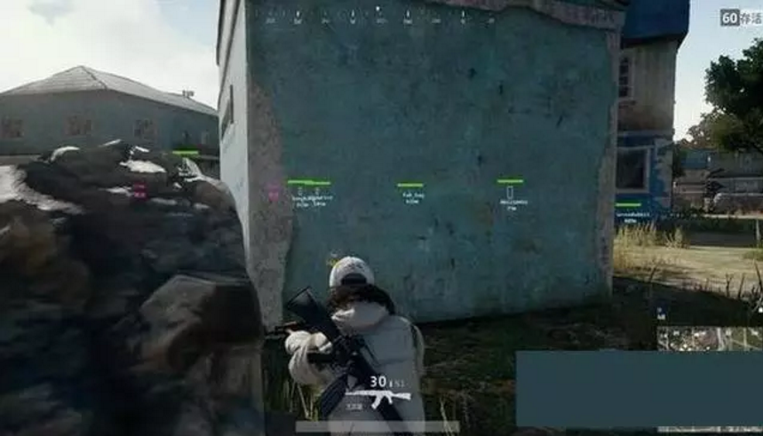 这是笔者在网吧里见到的一个开挂玩家,他使用的外挂不像之前那些普遍的外挂那么奔放,什么见面就秒杀百里开外一枪爆头都没有。在这名作弊者的视角里,只是会从上到下显示那名玩家的名字、血量、距离,在脸上的敌人还会直接显示出那个人的身体,虽然也有自瞄功能,但是这个自瞄是智能自瞄,可以自己设置爆头几率,还能让准心看起来是在人为压枪射击,除此之外还有一些加快打包、喝饮料、救队友读条时间的小功能。