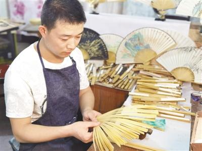 人民网-人民日报【绝活看点】16道工段、145道工序,作为国家级非物质文化遗产,荣昌折扇工序繁琐,尤其考验刀工,一刀偏差便前功尽弃……“80后”匠人李道良不仅继承传统技艺,掌握全套荣昌折扇手工技艺,更大胆创新,改良工具,打磨出一件件精美的折扇工艺品。“唰唰唰”,指尖握着竹片,刀锋滑过,细碎的竹屑从掌中簌簌飘落,李道良(见图)头歪斜,眼紧盯,手指在扇柄的边缘摩挲,足够光滑;再挥动几下扇柄,硬度合适!...