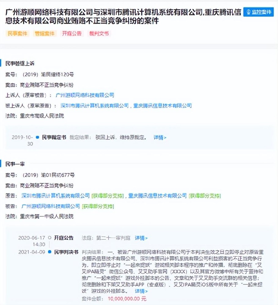 去年7月,腾讯起诉外挂制作公司叉叉助手案宣判。重庆市中级人民法院裁决叉叉助手运营公司停止不当竞争行为,同时向腾讯赔偿1000万元。据了解,叉叉助手主要是制作《一起来捉妖》相关外挂工具,因扰乱了《一起来捉妖》游戏生态而被腾讯诉诸法律。腾讯不止因《一起来捉妖》外挂问题而使用法律武器。游戏茶馆回溯过往新闻,腾讯在2018年就协助警方打掉了两个制作销售《PUBG》的外挂团伙,去年又配合昆山警方破获了一起涉...